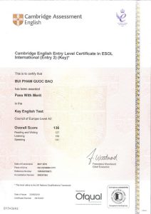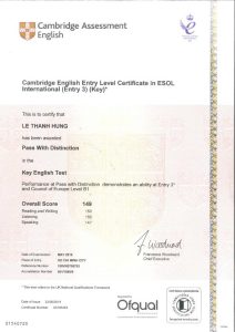 - Chứng chỉ được cấp bởi CAMBRIDGE ENGLISH LANGUAGE ASSESSMENT