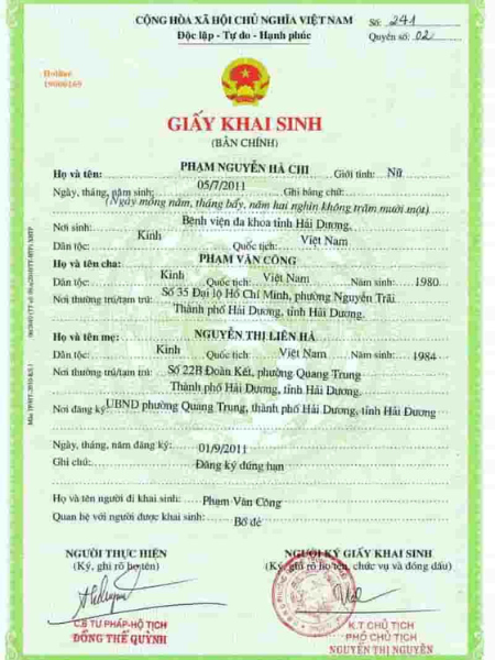 Dưới đây là một số mẫu giấy khai sinh được làm tại cơ sở của chúng tôi: